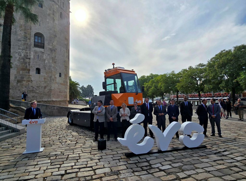 El presidente de la Autoridad Portuaria de Sevilla (APS), Rafael Carmona, ha participado hoy en la presentación del vehículo propulsado con hidrógeno, H2Tractor, una terminal tractor desarrollada por EVO que favorece el transporte sostenible en entornos logísticos y aeroportuarios.