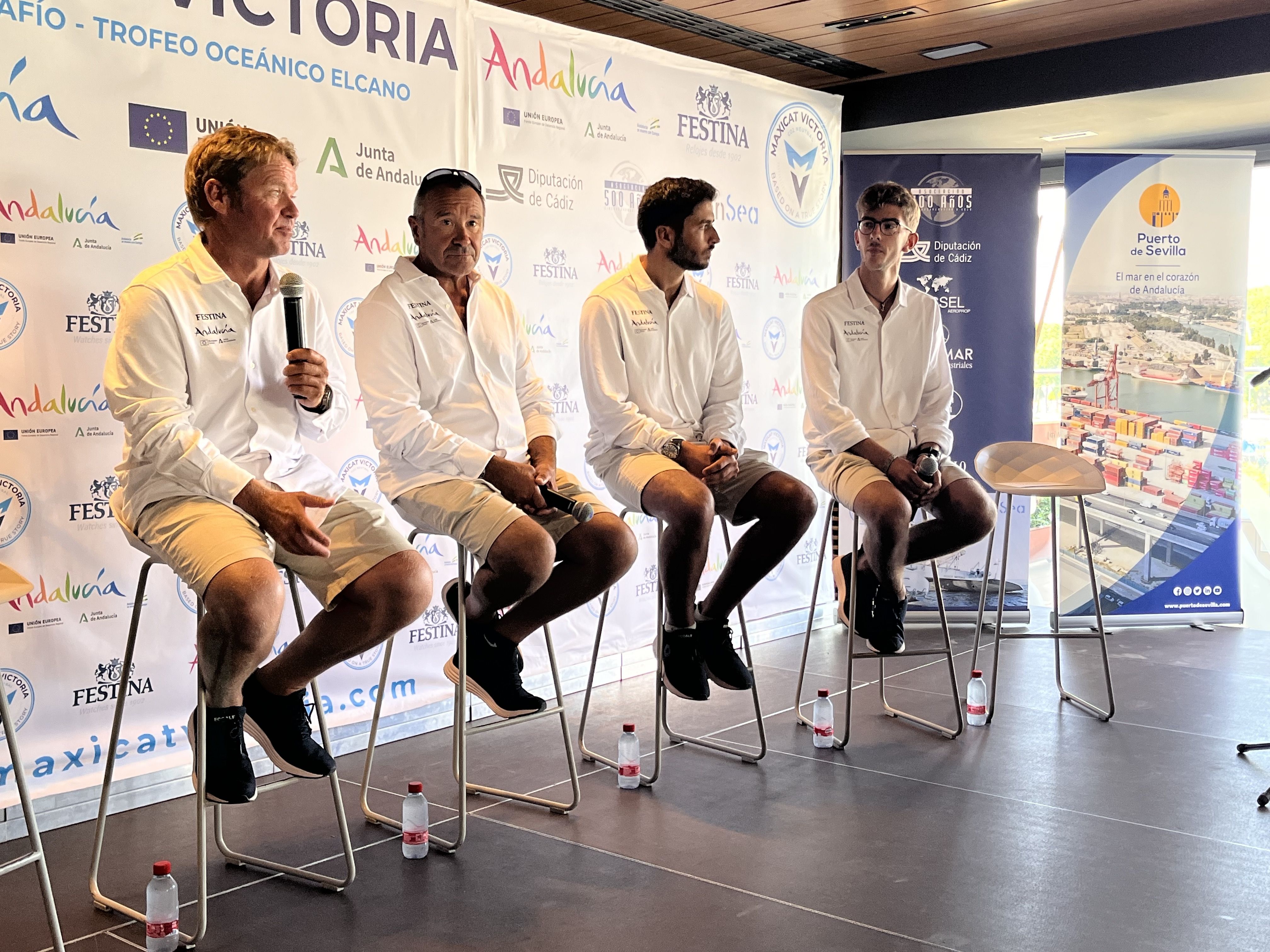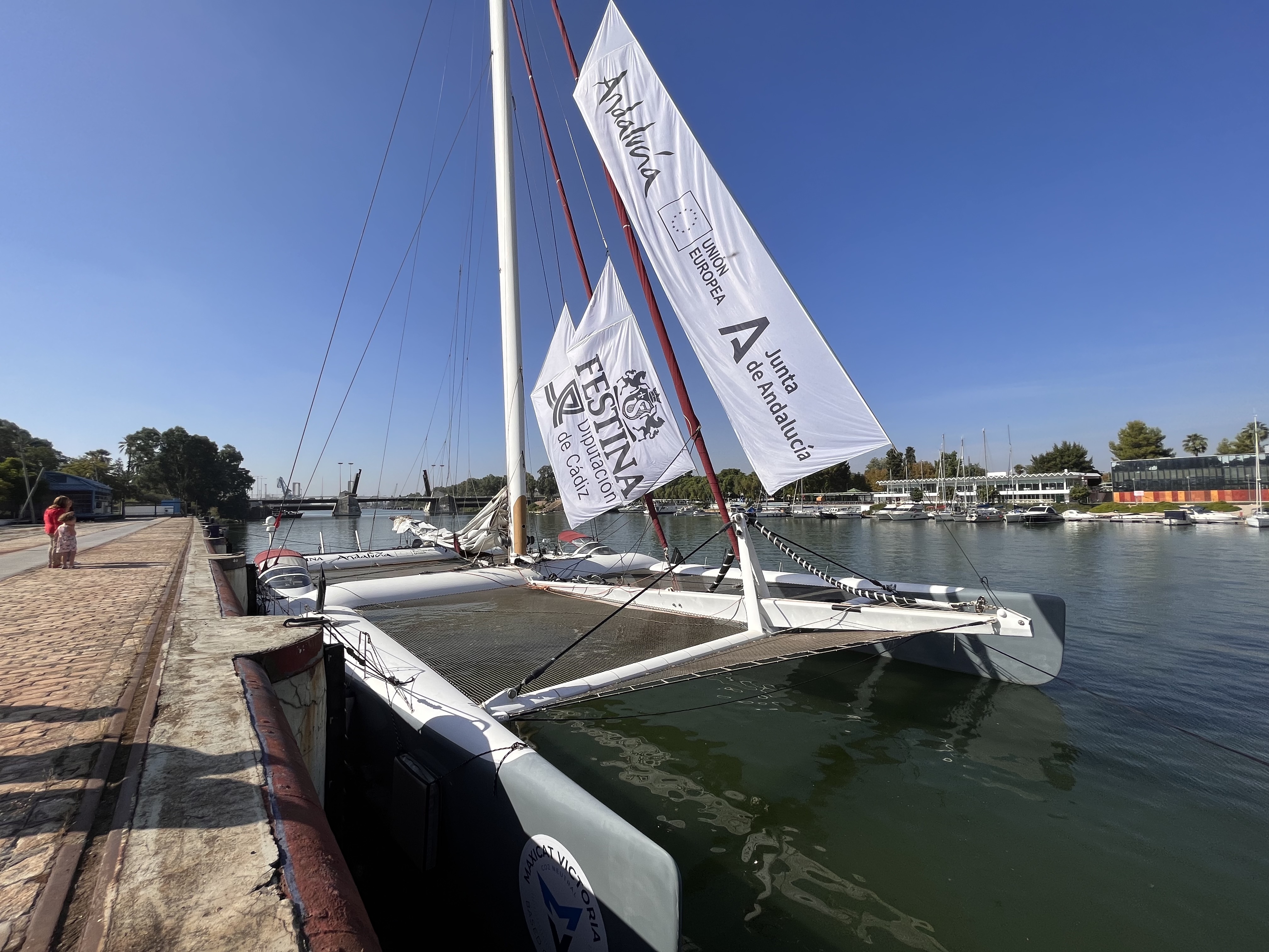 El Puerto de Sevilla ha sido testigo de la presentación del MaxiCat Victoria, primer desafiante español del Trofeo Oceánico Elcano. La tripulación del multicasco, encabezada por el navegante Alex Pella (Barcelona, 1972), ha remontado el río Guadalquivir desde Sanlúcar de Barrameda hasta Sevilla para dar a conocer la embarcación coincidiendo con el 501 Aniversario de la 1ª Circunnavegación a la Tierra (1519-1522) conseguida por la expedición Magallanes-Elcano.